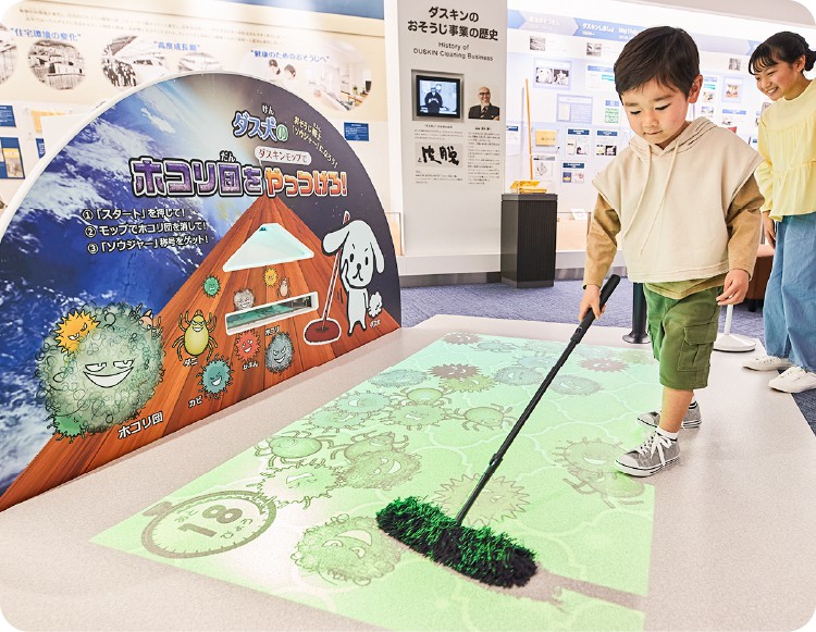 おそうじ館では、おそうじを学んだあとに「未来のおそうじ道具」や「おそうじの豆知識」を